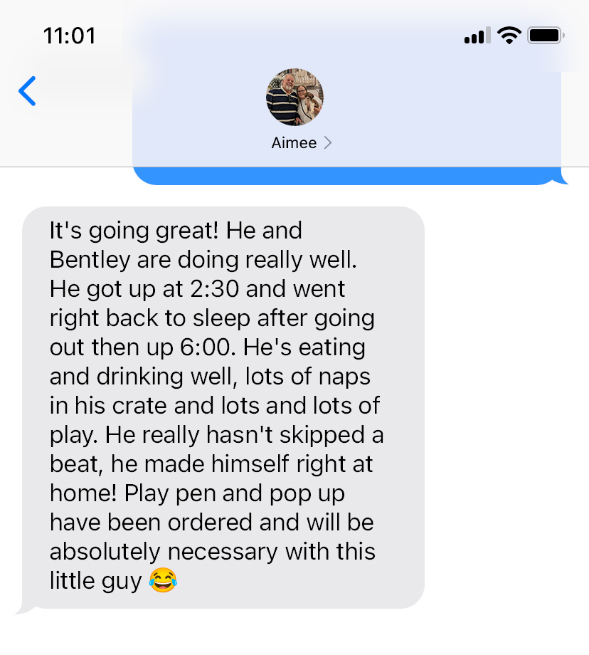 He really hasn’t skipped a beat, he made himself right at home! Play pen and pop up have been ordered and will be absolutely necessary with this little guy π