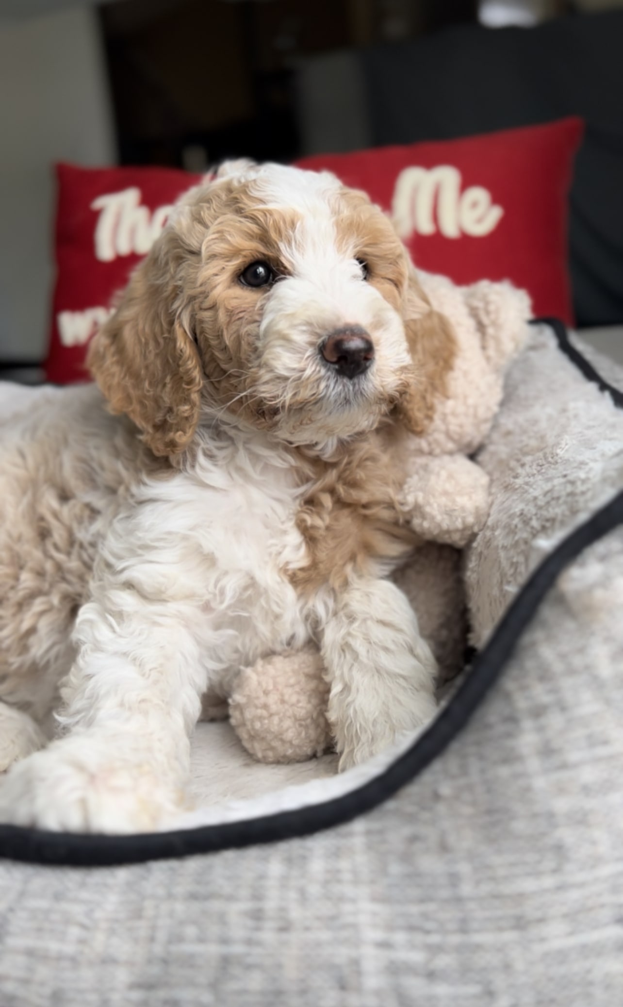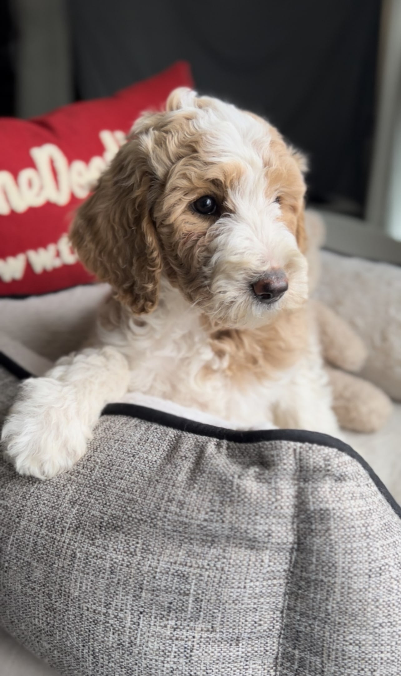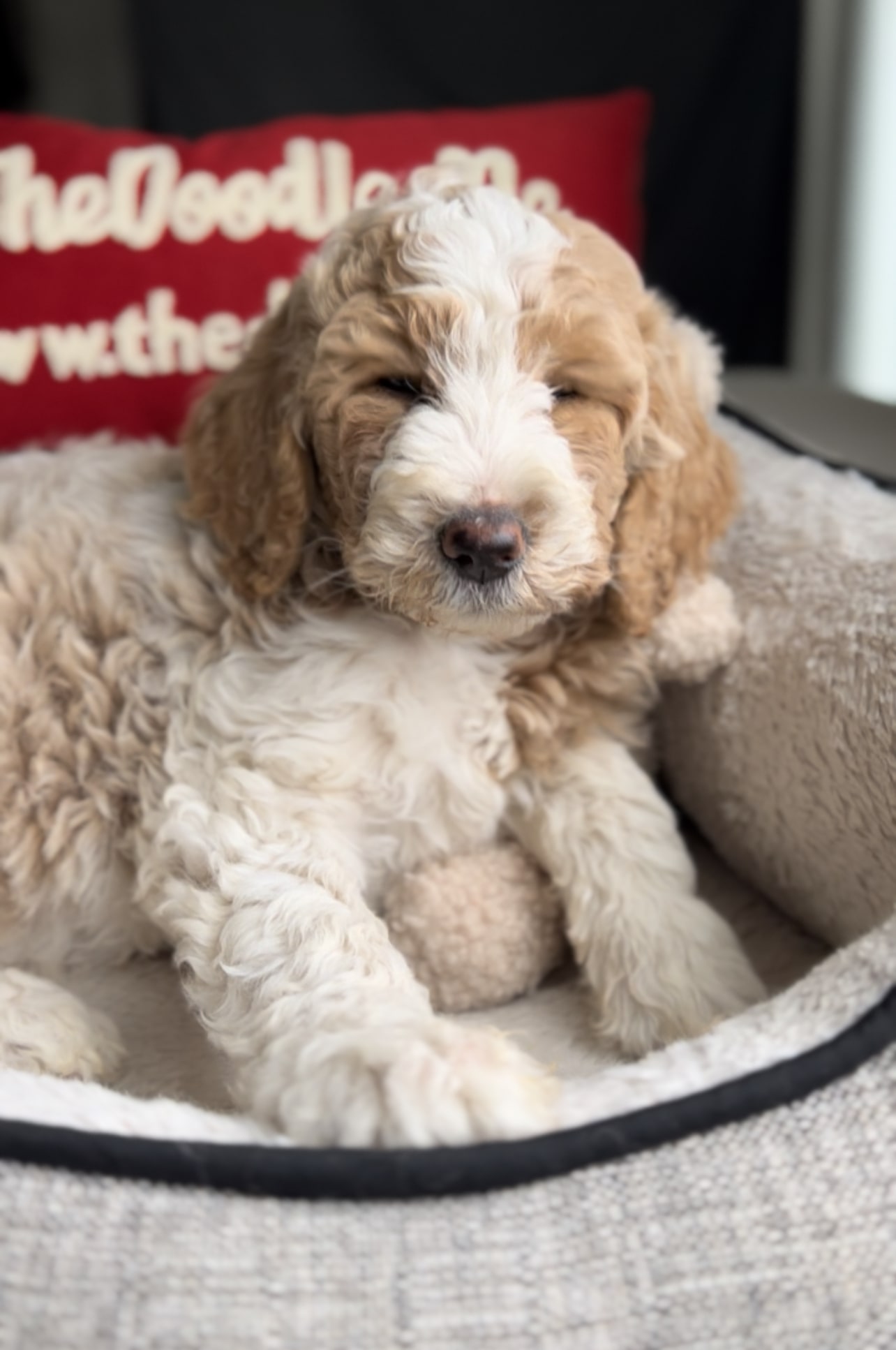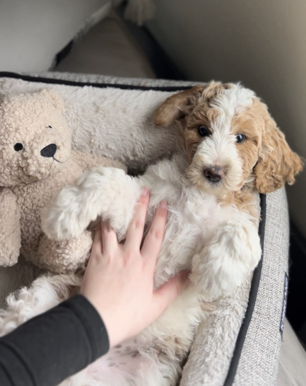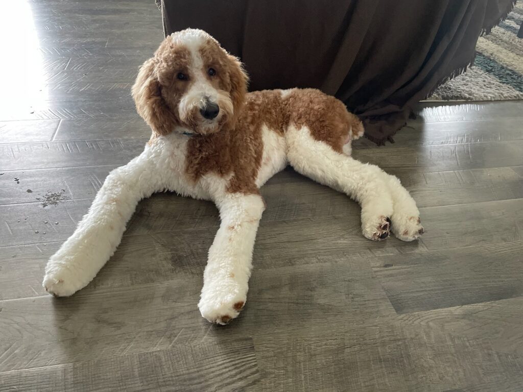 Reggie is very playful. We always joke & say he’s our cool Cali surfer dog- he has that vibe. Mamba (our Boxer) loves to play with him! He is a treasure to our household.