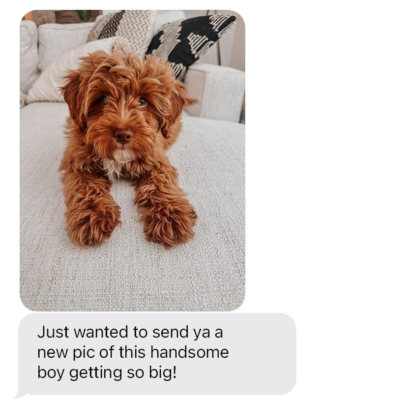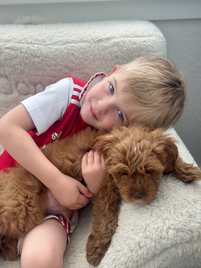 He’s the best! He whined once around midnight- went pee, and then right back to sleep in his crate! Slept until 5:45 and took him right outside and he went pee and poop right away! He’s soooo sweet and gentle and settling in so well. Loving all his new toys and of course chasing the boys around the backyard with their soccer ball