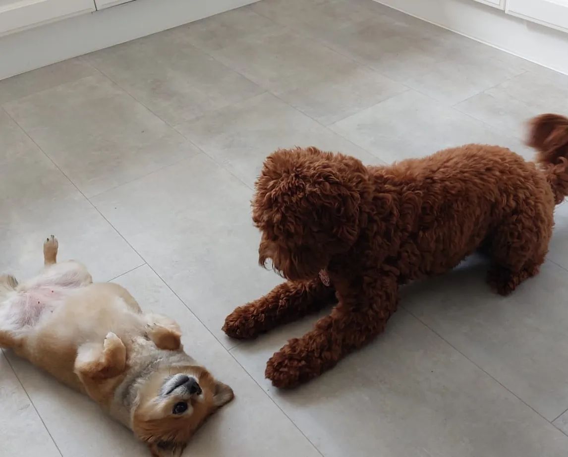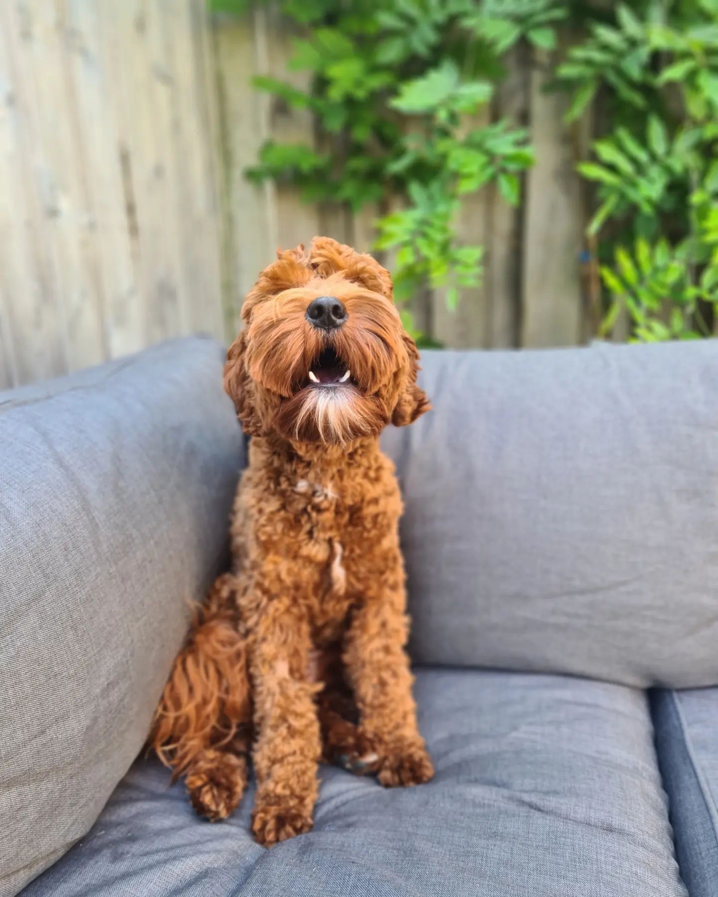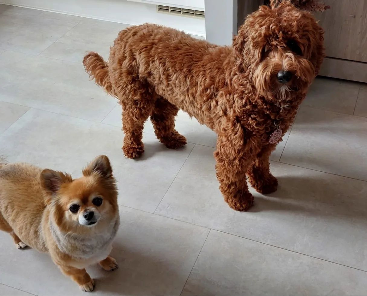 Wilma is a loving dog who is devoted to her human family and her puppies. She is gentle, patient, and always ready to play with her little ones. Wilma has a beautiful wavy coat that is low-shedding and hypoallergenic. She is intelligent and eager to please, making her early training a breeze. Wilma is also very affectionate and loves to cuddle up with her humans at the end of a long day. Her sweet and friendly personality makes her a favorite among everyone she meets.