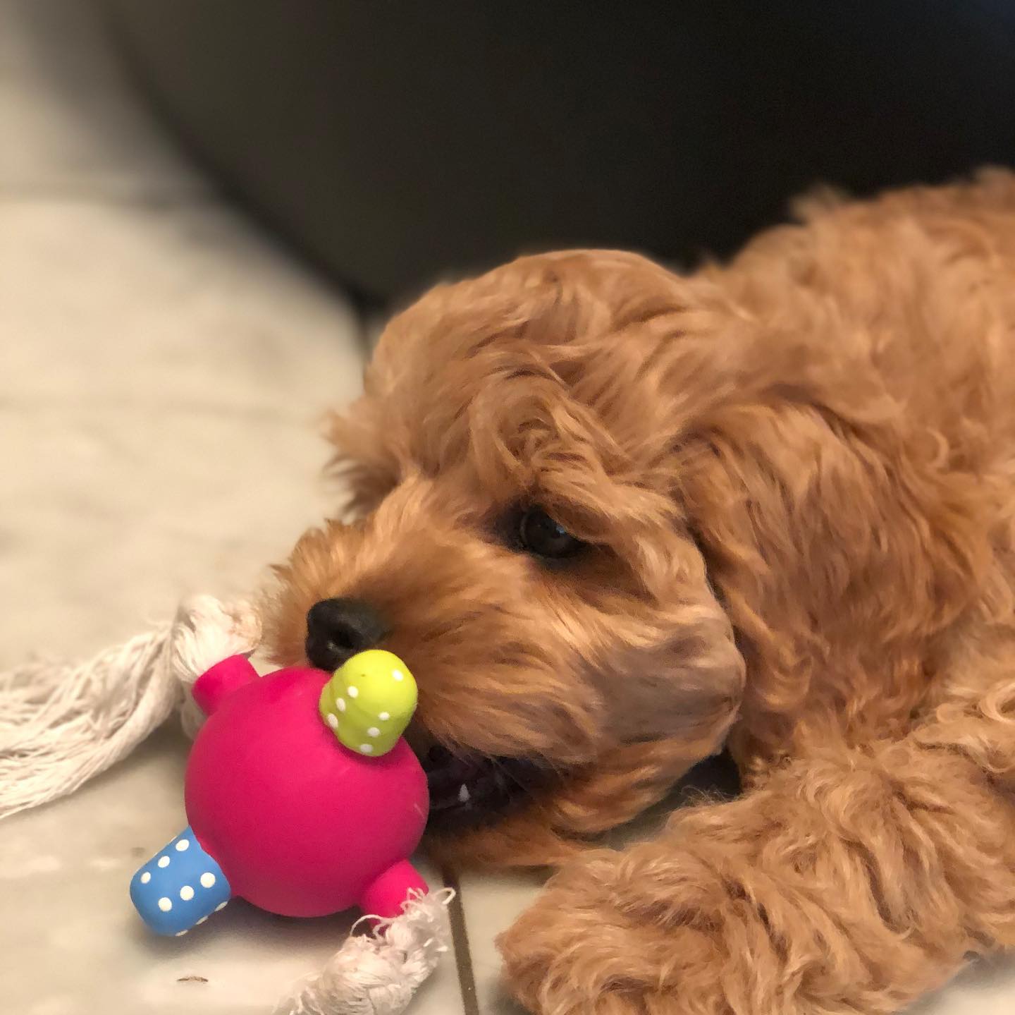 Butters is a playful and affectionate mini goldendoodle puppy who is eagerly seeking a loving family to call his own. He has a fluffy coat that is perfect for cuddling and a sweet personality that will melt your heart. Butters loves to play and explore. If you are looking to add a loyal and loving companion to your family, Butters is the perfect choice. Contact us today to meet Butters and see if he is the right fit for your family.